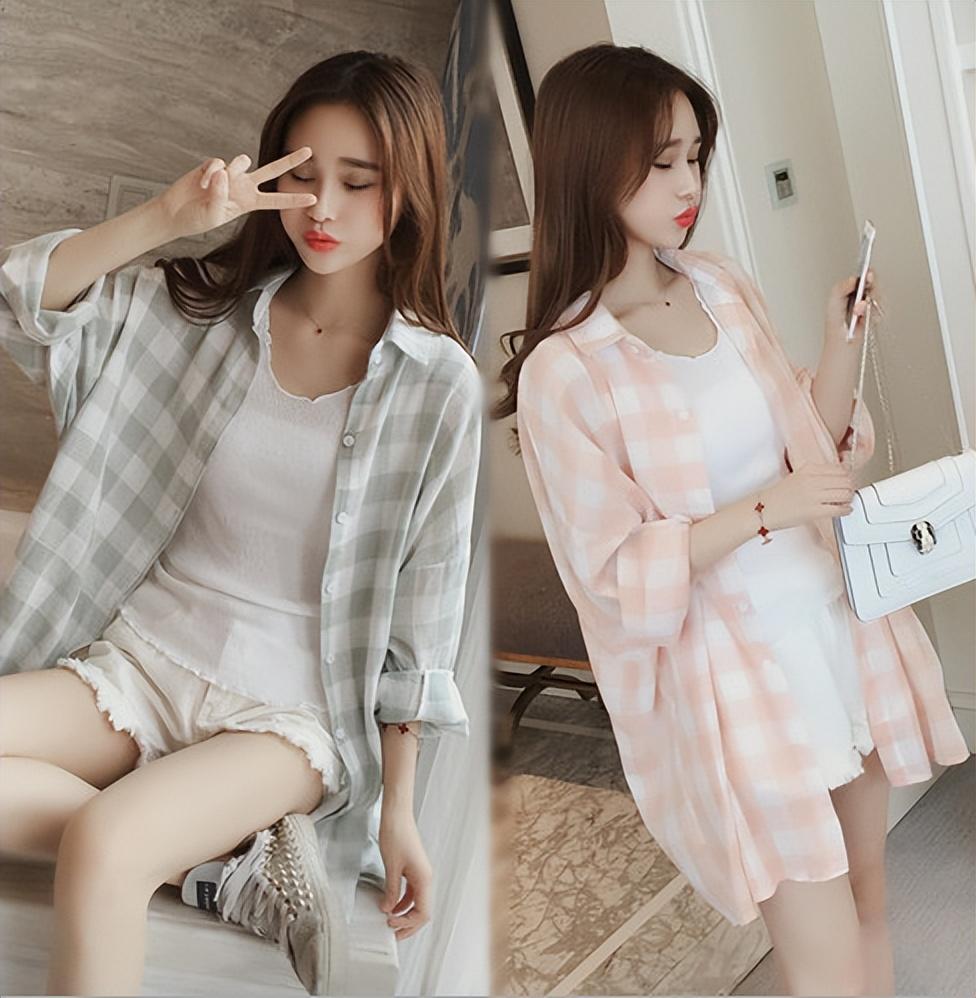 除了純色的色調外,在防曬衣上來點格紋的點綴,也是不錯的選擇,比純色的更加有殊死亮點,不會很單調。