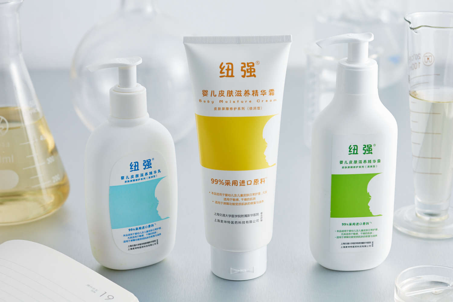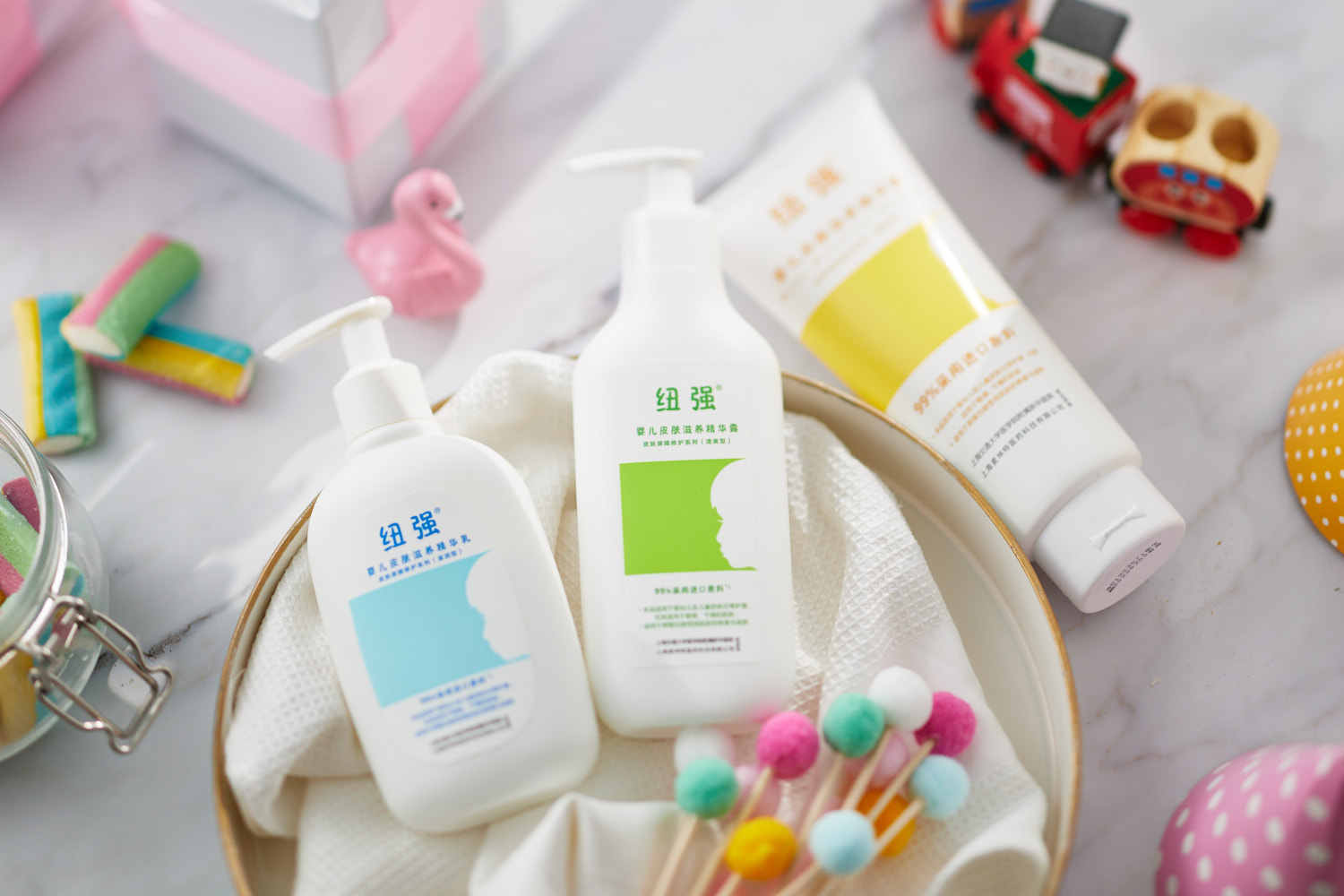 紐強目前共有3款SKU在售:藍色精華乳,滋潤型產(chǎn)品可用于平時護理,適合春秋季;綠色精華露,清爽型產(chǎn)品可用于夏季;黃色精華霜,倍潤型產(chǎn)品適用于干燥、寒冷的冬季和北方地區(qū),單價為238元/200g。紐強將在未來拓展嬰童防曬霜、洗發(fā)露、洗衣液等,補充嬰童洗護的全品類。