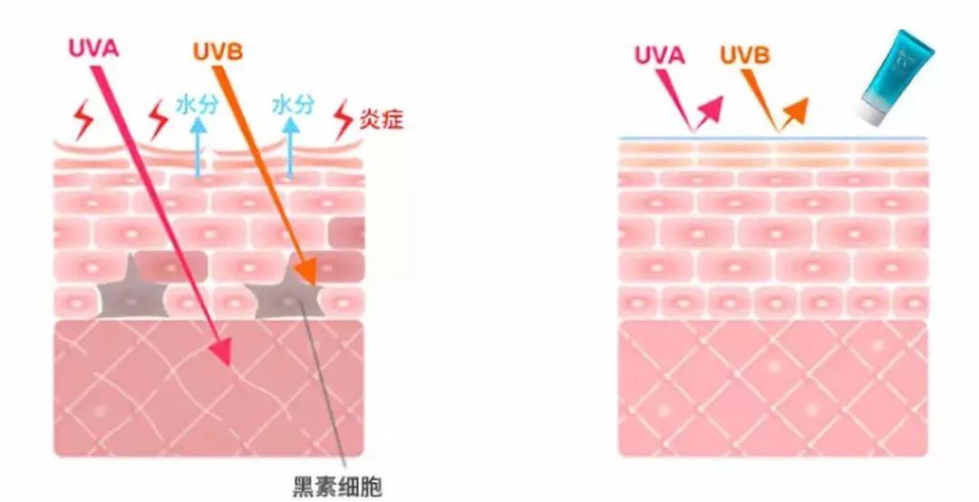 因為我們不止是要防曬黑,更要防衰老。對我們皮膚傷害大的就是紫外線了,它主要由UVA、UVB兩大類組成。