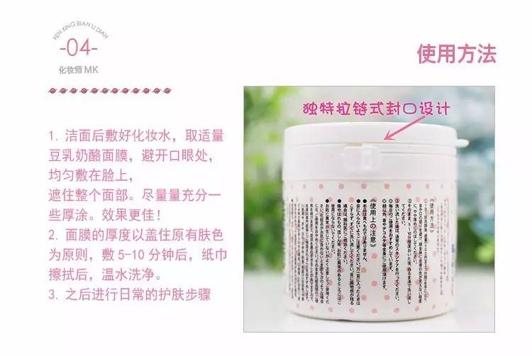 這款日本超人氣面膜,梨花、不老仙妻的強(qiáng)推~樂天網(wǎng)上商城連續(xù)銷售量第一的面膜呢!含有豆乳精華、維生素E、蜂蜜紫蘇成分,可以美白柔嫩肌膚,抗氧化果棒棒噠!Q滑如同豆乳一樣的質(zhì)地,上臉后有淡淡的奶香味,十分的愜意~全天然的成分,敏感肌的小主不容錯(cuò)過哦!當(dāng)然干皮油皮也同樣適用呢~