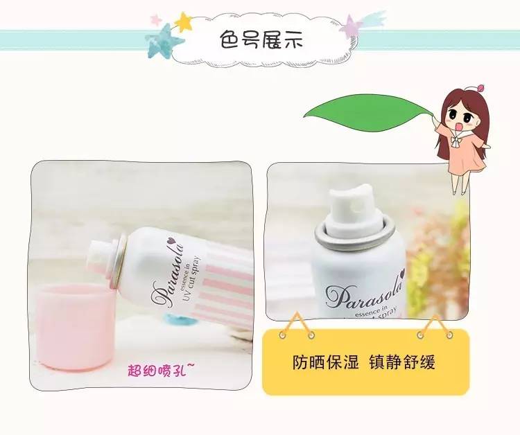 COSME大賞防曬部門第二名,COSME大賞防曬噴霧類第一名,日本女生票選愛防曬噴霧類型第一名……10個(gè)手指+10個(gè)腳趾都數(shù)不完!防曬噴霧用來補(bǔ)防曬好,方便省心,帶妝的情況下也可以直接噴,不會(huì)糊掉妝面!娜麗絲的這款,質(zhì)地之輕薄、噴霧之細(xì)膩與BIOLADY無異,特點(diǎn)在于蘊(yùn)含保濕精華以及蘆薈萃取物、膠原蛋白和玻尿酸等6種美容成分,在防曬的同時(shí)兼顧保濕,干皮妹砸看過來!防曬值達(dá)到了SPF50+/PA++++,防水防汗不易掉,就算你要去海灘陽光浴也不怕。還有這么粉嫩嫩的包裝,啊啊我的少女心被炸出來了,錢包君飛出去了~