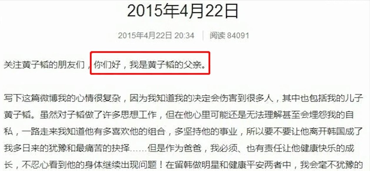 而黃忠東先生為了不讓兒子被誤會,于是將所有的責任一個人扛了下來,這也是黃子韜父親的第一次出現(xiàn)在大眾視野。