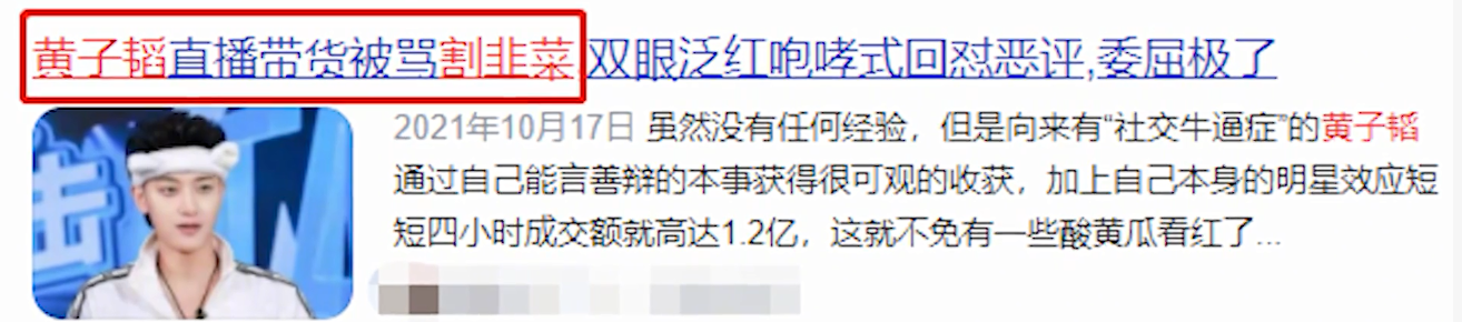 后來黃子韜直播帶貨,更是創(chuàng)下了4個小時交易額超過1.2億的紀錄,整場直播下來更是突破了2億,但是卻有不少的粉絲紛紛眼紅,直接諷刺黃子韜割韭菜。