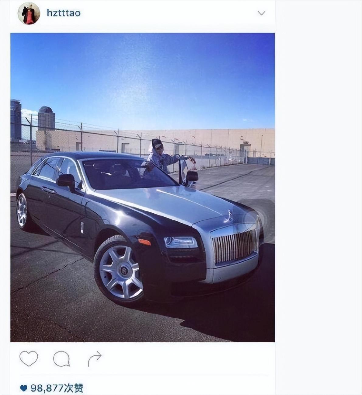 黃子韜能有多有錢?他曾在社交平臺曬出自己愛車勞斯萊斯古斯特,價值高達500萬元。