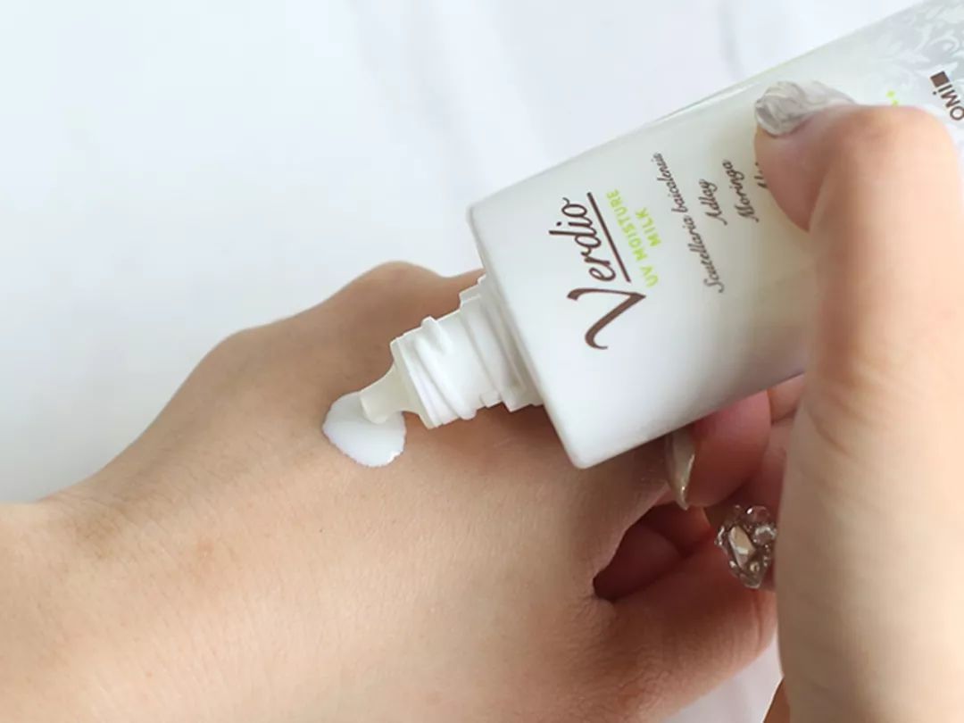 質(zhì)地像乳液一樣,流動性很好,很容易推開,成膜速度也快。一般化妝的時候,用在護膚步驟之前,既能當(dāng)防曬也能當(dāng)妝前乳!