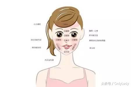 左臉頰:肝功能不太好,肝臟的分泌、排毒或是