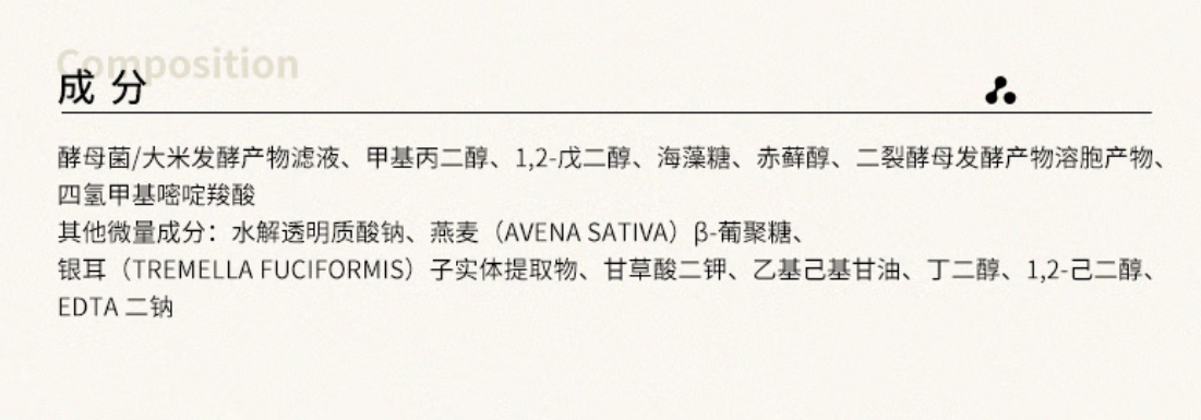 成分方面,除了水、丁二醇、丙二醇兩種保濕劑,還有雙重玻尿酸,保濕方面沒有問題。不過其含有少量防腐劑,皮膚敏感人群需要注意。