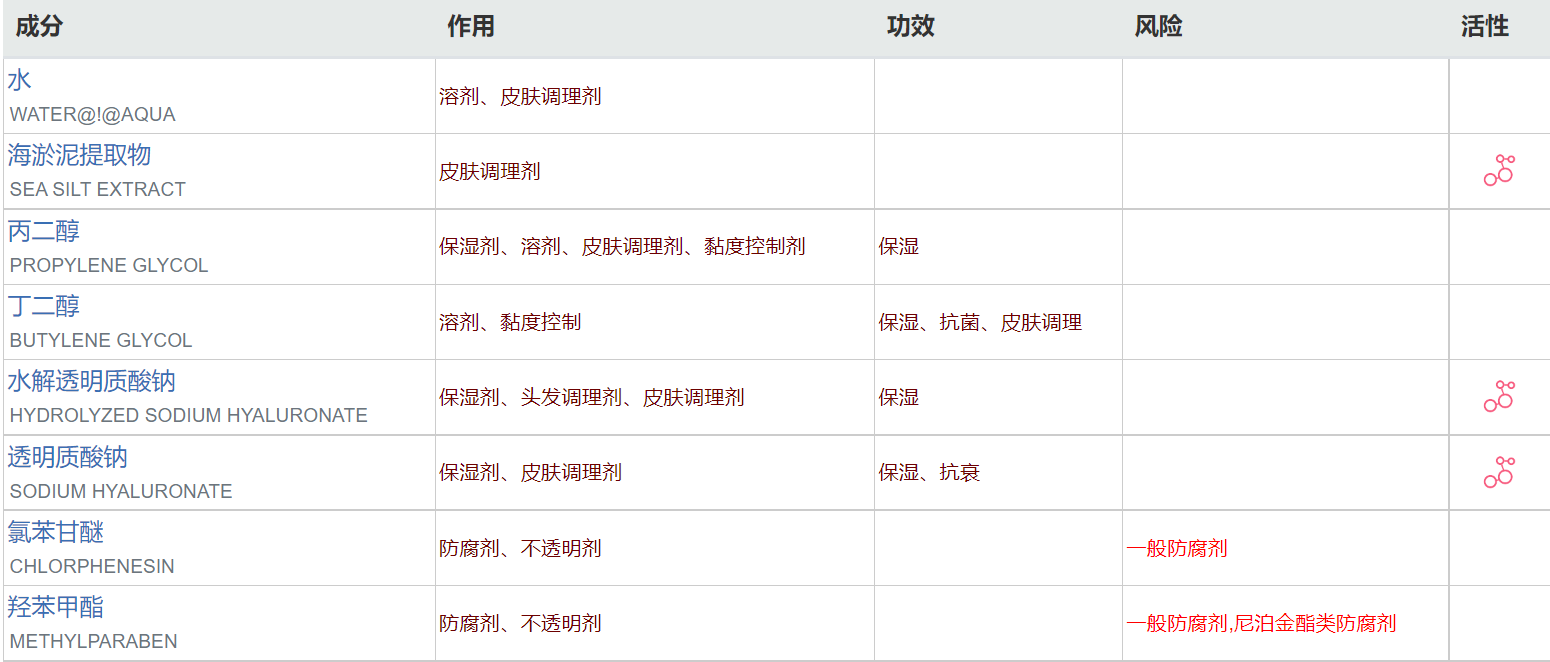成分方面,這款并不出彩,主打無香料、無著色,不粘膩,三種透明質酸可幫助肌膚平衡水油,雖然含有部分防腐劑和硅油成分,但安心度整體也能達到4星。