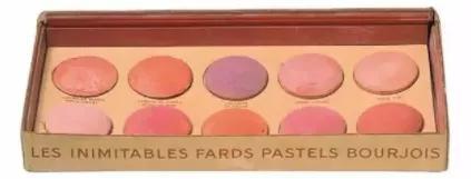 早出現(xiàn)的腮紅多是霜狀的,濕潤狀態(tài)的。妙巴黎的腮紅是世界上第一款采用烘手法的粉彩腮紅,在1912年發(fā)售,制作過程如同烘焙餅干般,將脂粉混合了水、精油及其它原料,放置于半球狀的模具里烘烤,再經(jīng)高溫烘干成型。