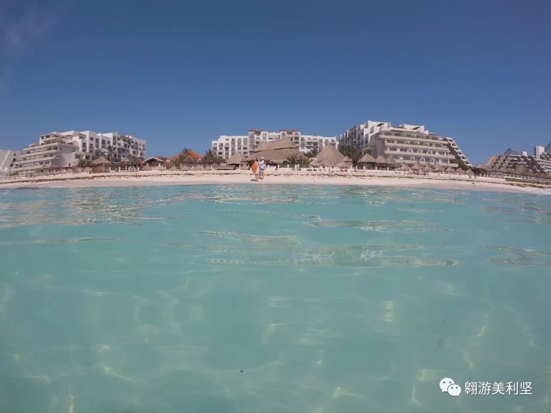 在海里回頭拍了一張酒店的照片,F(xiàn)iesta Americana Condesa的三棟樓都在照片里了,左邊的Sun Tower, 中間的Sea Tower,和右邊的Moon Tower.