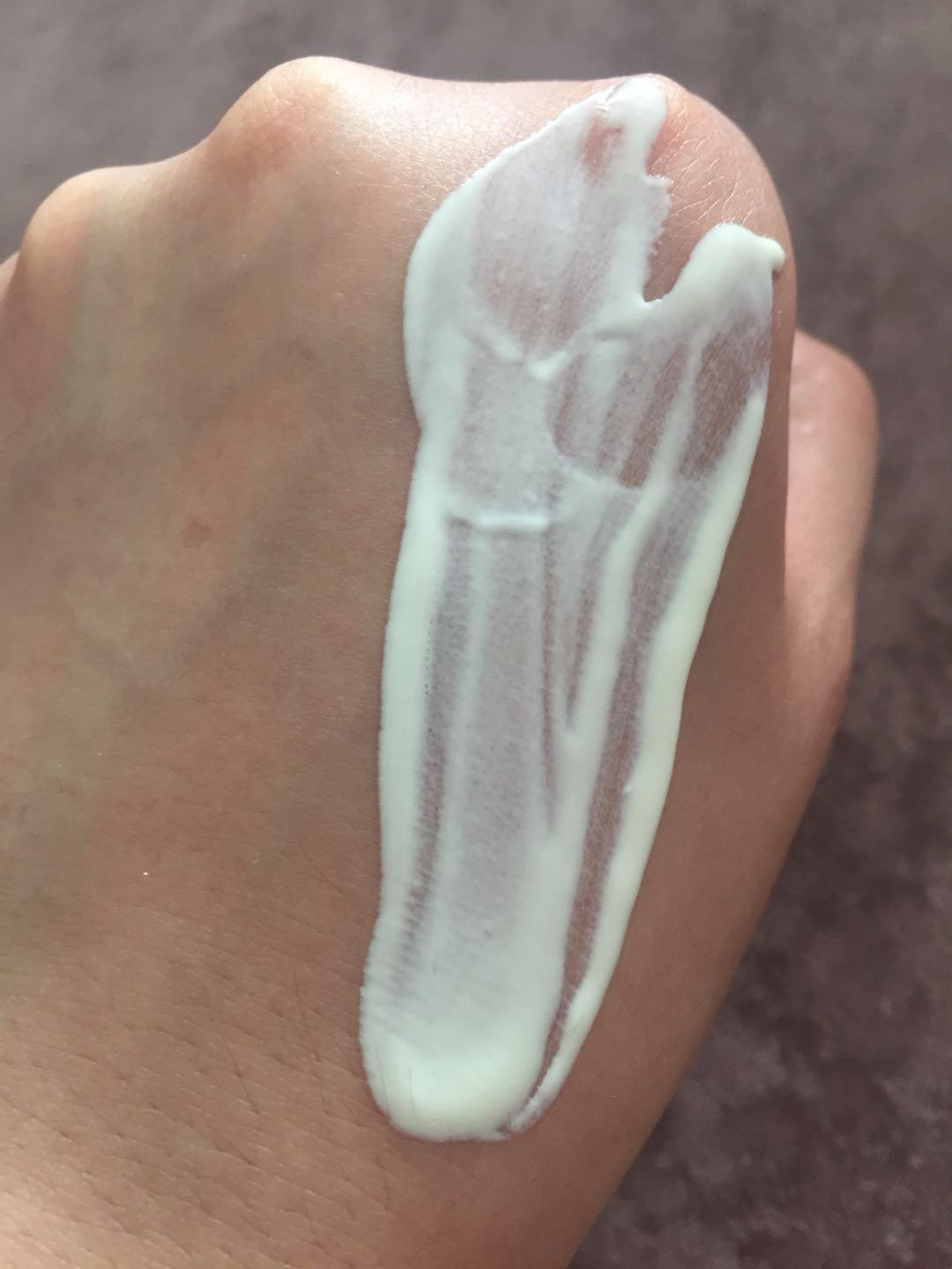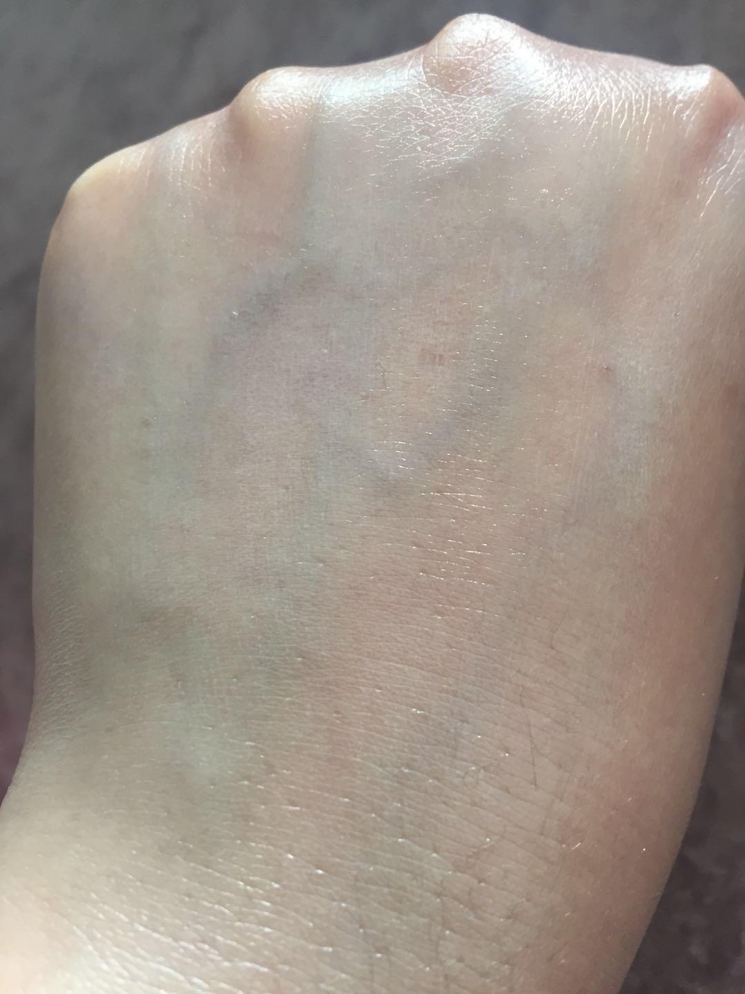 推開后,不泛白,很好推,立馬成膜,成膜后,皮膚表層會形成一層油膜,但不厚重,不悶