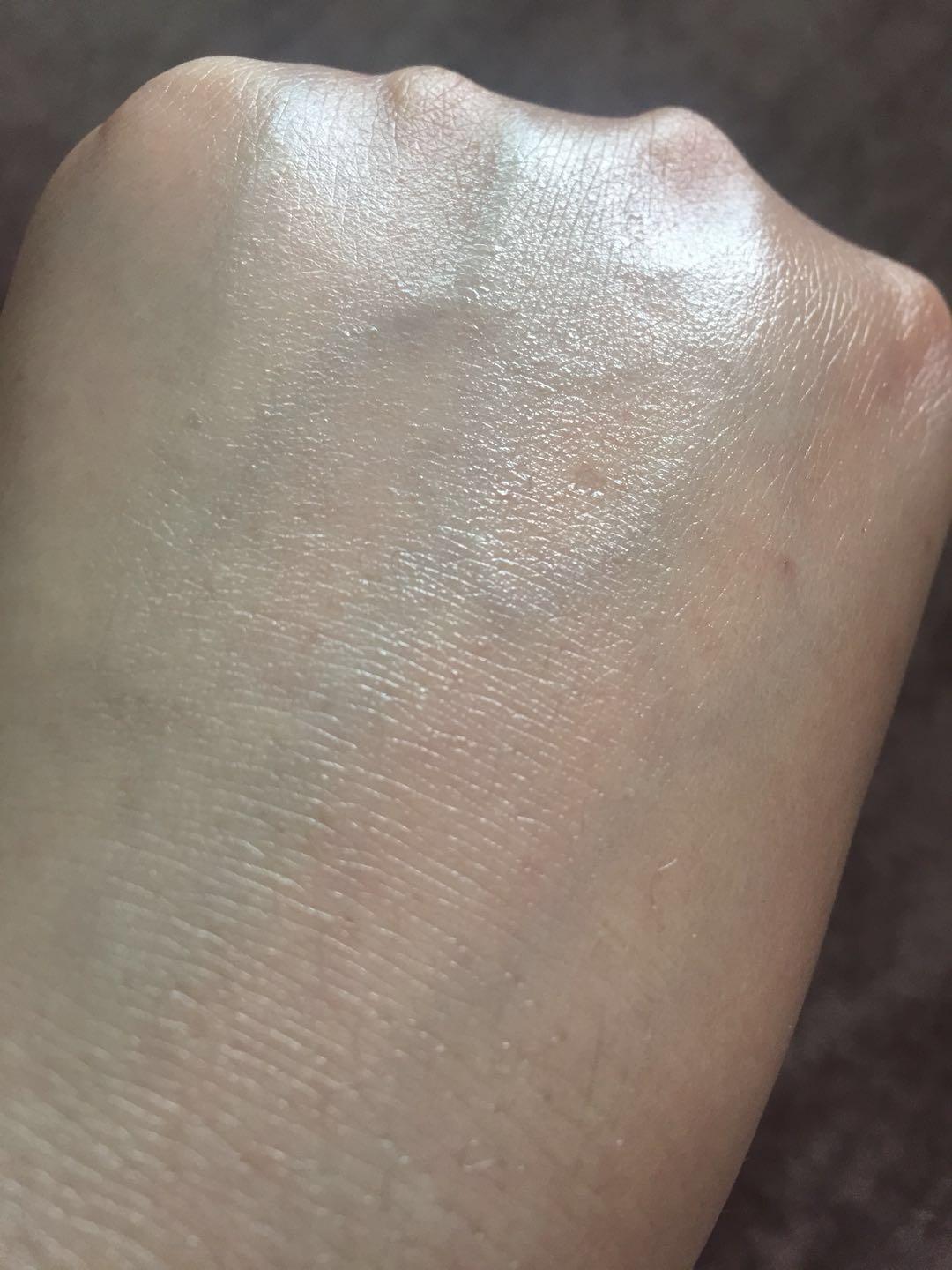 成膜挺快的,推開后皮膚表面覆蓋一層油膜,皮膚亮亮的,用手指接觸有一點黏膩感