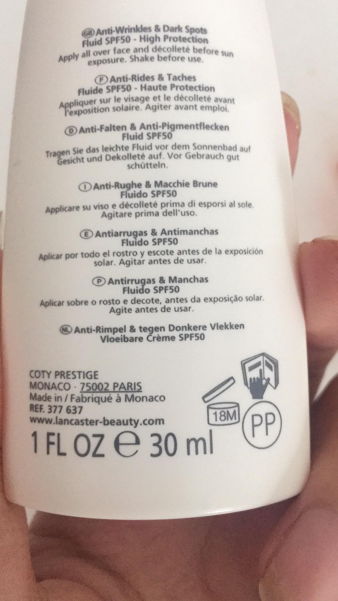 2、蘭嘉絲汀LANCASTER悅陽青春無限好淡斑亮顏防曬液