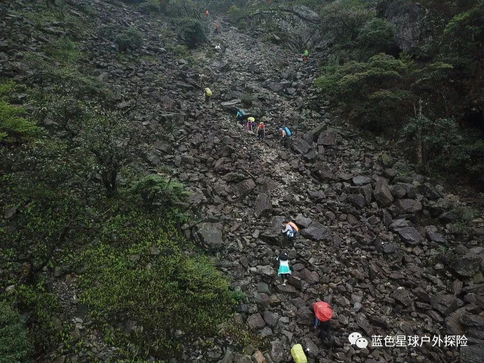 艱難的路途從遇到亂石坡開(kāi)始,亂石坡顧名思義是由雜亂的石頭堆積起來(lái)的山坡,攀爬這個(gè)山坡需要很大的毅力和聽(tīng)從領(lǐng)隊(duì)的指導(dǎo)。