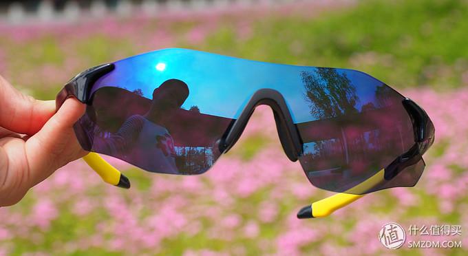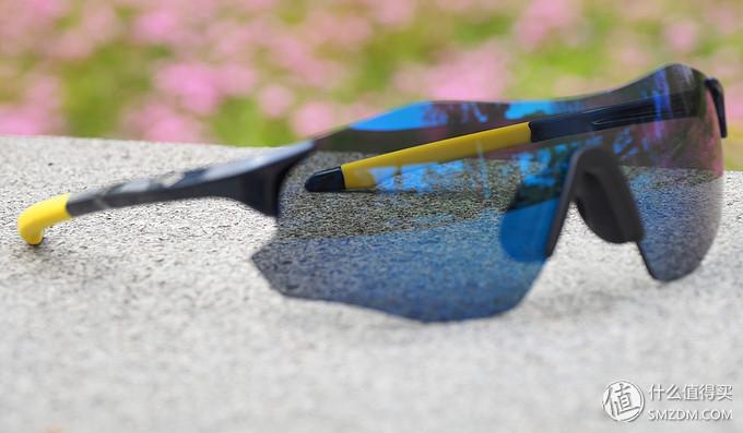 首先是佩戴。此款運動太陽鏡具有一定的弧度,能很好的貼合面部,直觀感受來說就是佩戴感舒適不夾頭不夾鼻,而且頭部隨意甩動也不會松脫掉落眼鏡,運動時可以放心使用。藍色的鍍膜看著十分的炫酷,運動感外觀的同時也讓它足夠時尚。(就問模特酷不酷?帥不帥? ) ▼
