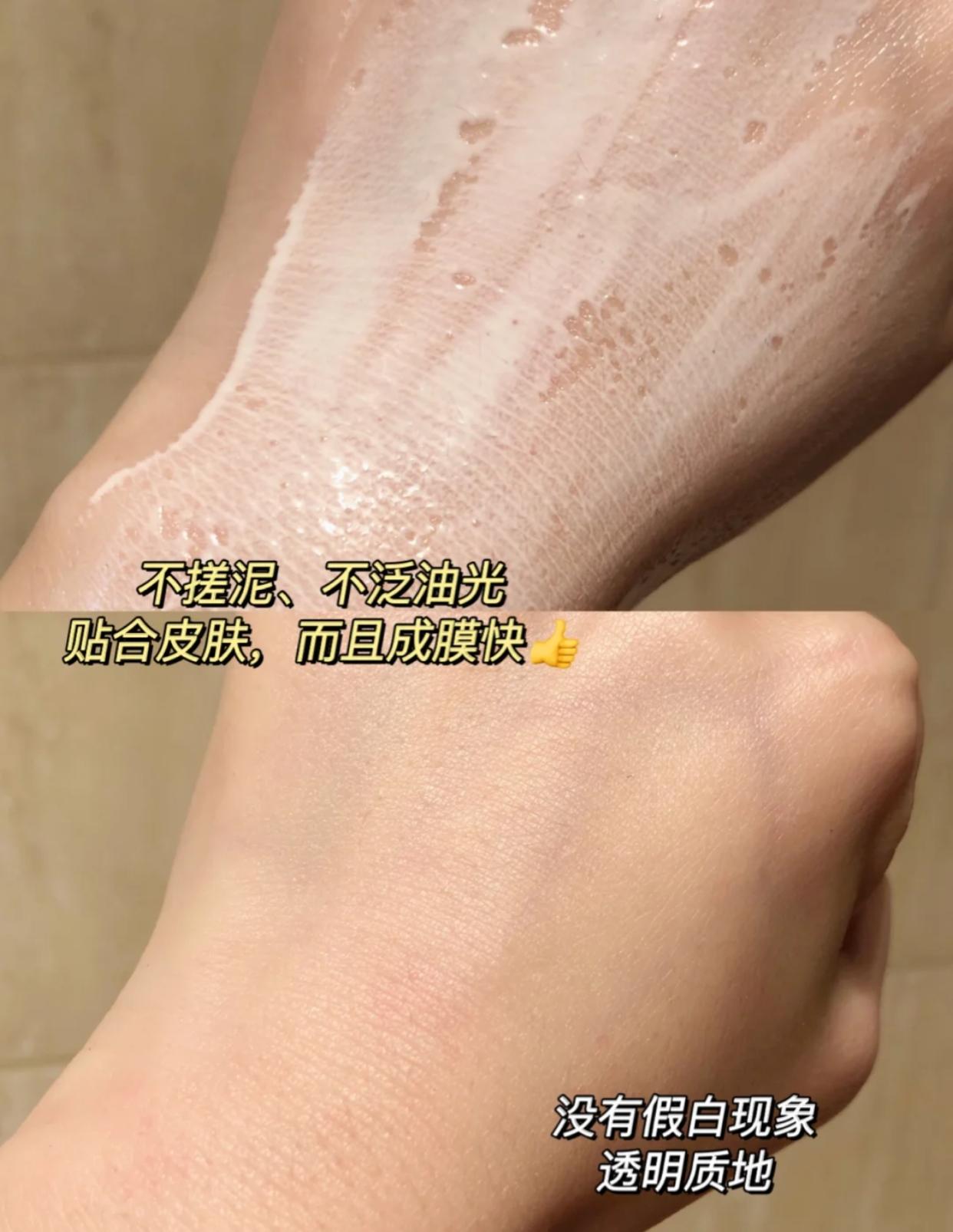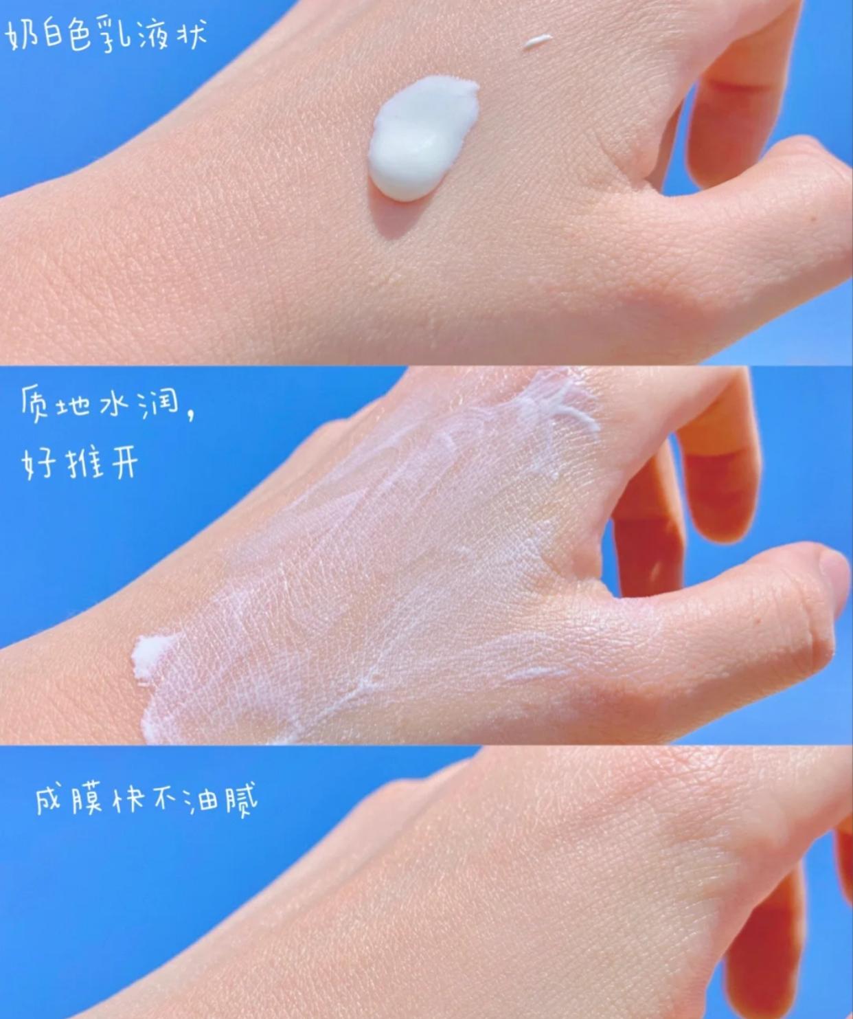 其次質(zhì)地比較滋潤(rùn),30s左右就能成膜,不過因?yàn)槭羌兓瘜W(xué)防曬,不太適合敏感肌,油皮用起來膚感也會(huì)偏油。