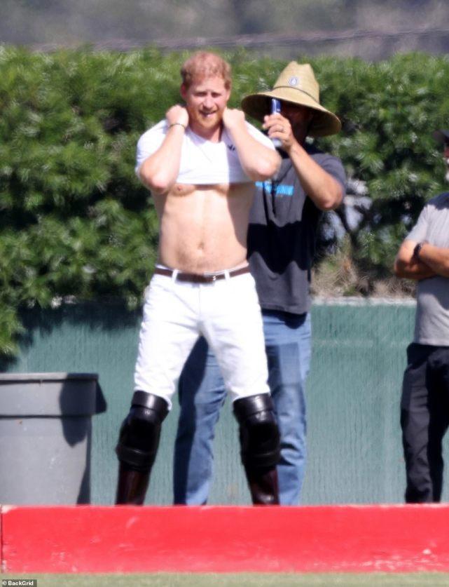 紅發(fā)已經(jīng)不太濃密的哈里,在上馬前還讓同伴為他的后背涂上防曬霜,即便是有T恤的遮擋,王子依然害怕西海岸的暖陽灼傷自己的皮膚。