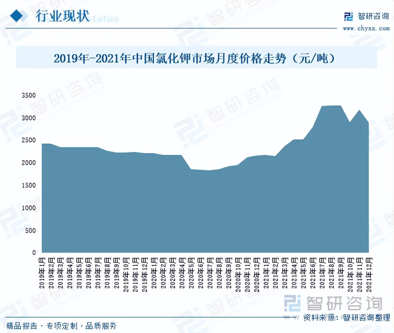 由于國際氯化鉀市場產(chǎn)品供給偏緊,我國氯化鉀市場價格開始一路上漲。2021年1月-12月,國內(nèi)氯化鉀市場產(chǎn)品噸價上漲了719元;2021年12月,我國氯化鉀市場批發(fā)均價達(dá)2894元/噸。因此,為穩(wěn)定行業(yè)市場產(chǎn)品供應(yīng),2022年我國政府接連頒布多項政策鼓勵相關(guān)企業(yè)增加氯化鉀產(chǎn)品儲備,支持企業(yè)加大國內(nèi)鉀鹽資源勘探開發(fā),同時鼓勵行業(yè)加緊與國外資源資本合作。目前,我國氯化鉀產(chǎn)品市場價格仍保持高位運行。