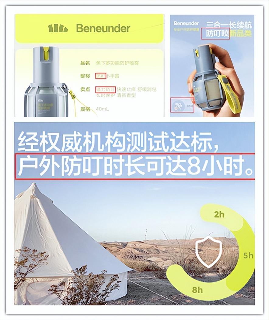 為了維系“黑科技”印象,蕉下甚至“擦邊宣傳”,今年夏天,蕉下就惹上了“驅(qū)蚊產(chǎn)品無(wú)農(nóng)藥證號(hào)、被質(zhì)疑打宣傳擦邊球”的麻煩。陷入輿論風(fēng)波的是蕉下旗下一款名為多功能防護(hù)噴霧的產(chǎn)品,雖然品名里回避了“防蚊”,但產(chǎn)品介紹頁(yè)卻有宣稱(chēng)“戶外防叮時(shí)長(zhǎng)可達(dá)8小時(shí)”等“防蚊”功文案,產(chǎn)品成分表中也標(biāo)注有常見(jiàn)的有驅(qū)蚊產(chǎn)品。
