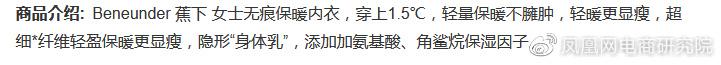 蕉下的秋冬服飾,以保暖、彈力等為賣(mài)點(diǎn)依然宣傳“黑科技”。在第三方種草、導(dǎo)購(gòu)內(nèi)容中,這些“黑科技”的宣傳話術(shù)更為夸張,有稱(chēng)保暖內(nèi)衣如“隱形‘身體乳’一般,“添加氨基酸、角鯊?fù)楸褚蜃印?、“含有氨基酸保濕成分抗靜電”等。
