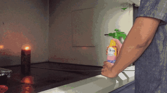 固定火源(蠟燭),點(diǎn)燃火源,將防曬噴霧分別從 75 cm、15 cm 的距離噴向火源,噴霧通過(guò)火焰的上半部,觀察噴霧是否被點(diǎn)燃。本實(shí)驗(yàn)全網(wǎng)!實(shí)驗(yàn)有危險(xiǎn)!請(qǐng)大家切勿模仿!