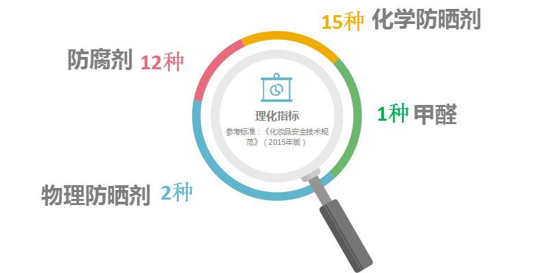 經(jīng)過查找資料并與業(yè)內(nèi)專家和檢測機構溝通討論,確定了本次比較試驗理化檢測依據(jù)為:《化妝品技術規(guī)范 》(2015年版)。測試共涉及化學防曬劑、物理防曬劑和防腐劑以及甲醛四大類共計30個項目指標。