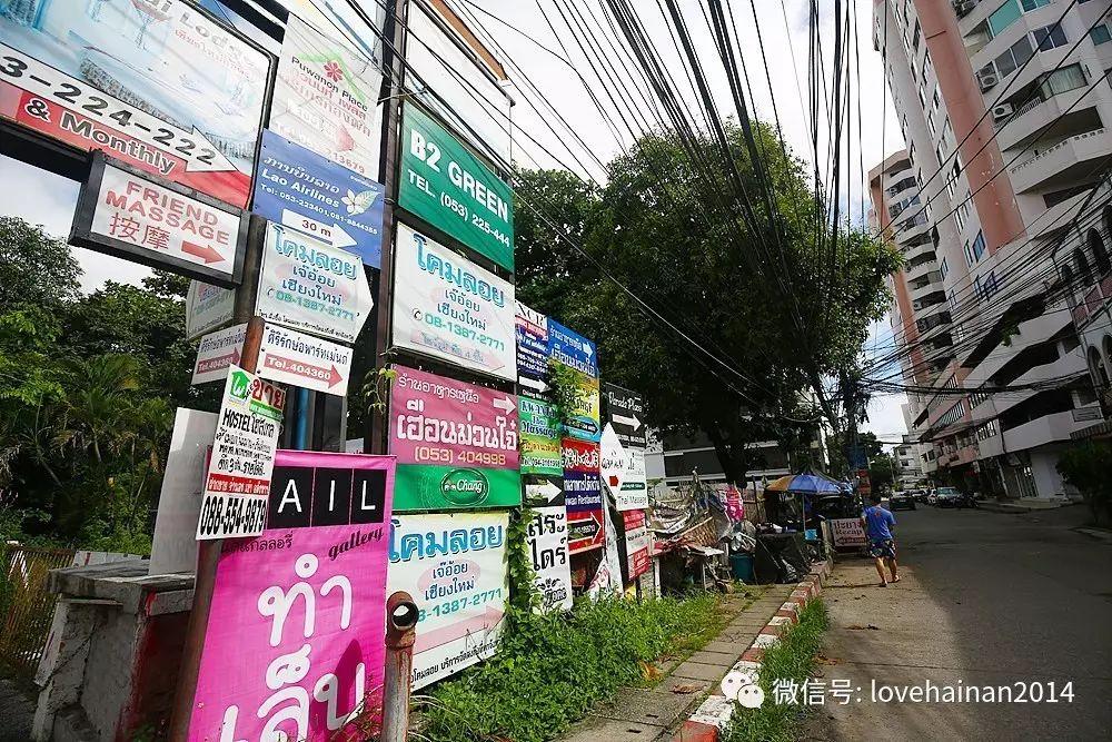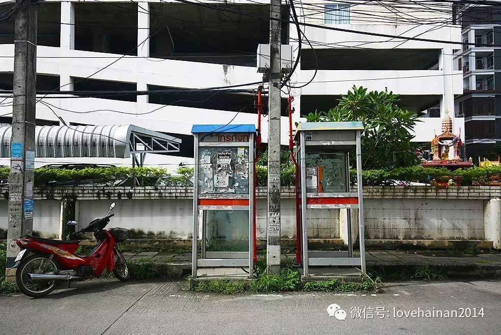 清邁路邊還是有這樣的老式電話廳,很多墻上都會(huì)貼著中文廣告宣傳單“什么二手房、賣房”之類的。