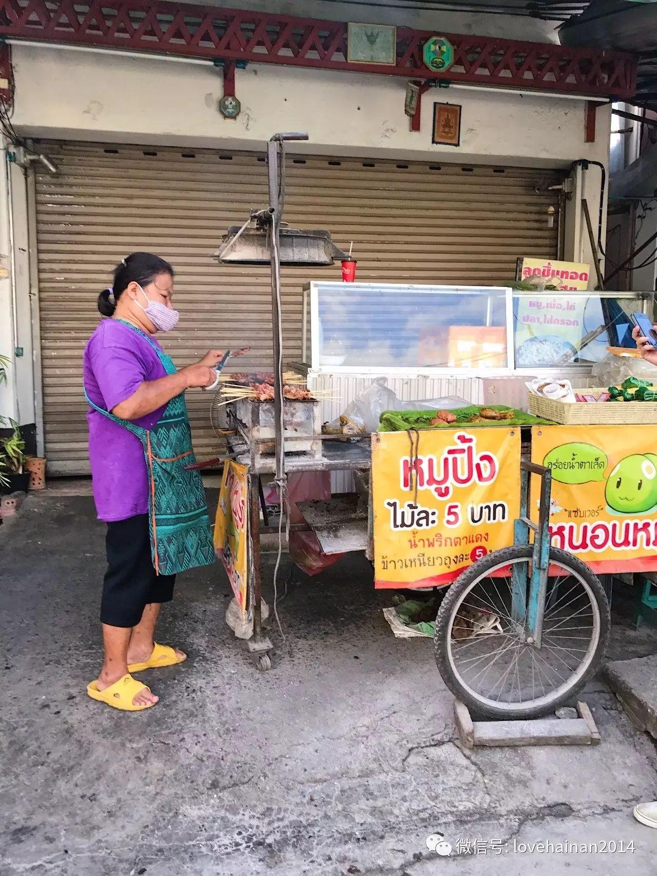 前臺(tái)的小哥懂中文也很靦腆,店里可以租摩托車,價(jià)格雖然比外面高50B,但是用車還車方便。由于清邁不算很大,所以第二天決定用腳來丈量這座城市!清邁的商鋪開門都比較晚,10點(diǎn)左右街上都沒什么人影,賣早餐的阿姨有不少,但是,早餐吃烤肉真的不膩嗎?