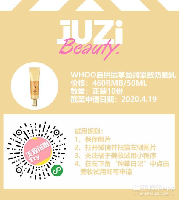 美妝福利時(shí)間又到啦!本期免費(fèi)試用產(chǎn)品:Whoo后拱辰享盈潤緊致防曬乳