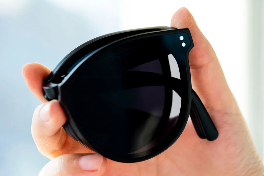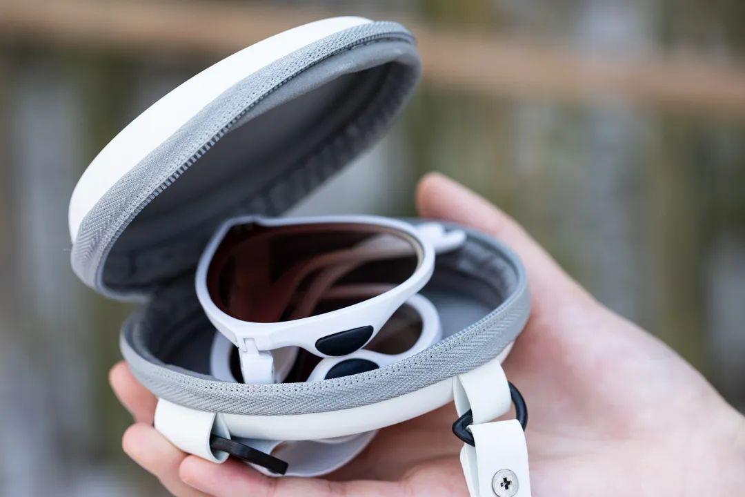 眼鏡是全折疊的,可以折成耳機(jī)盒大小,重量甚至不足25g,帶著基本無(wú)感。