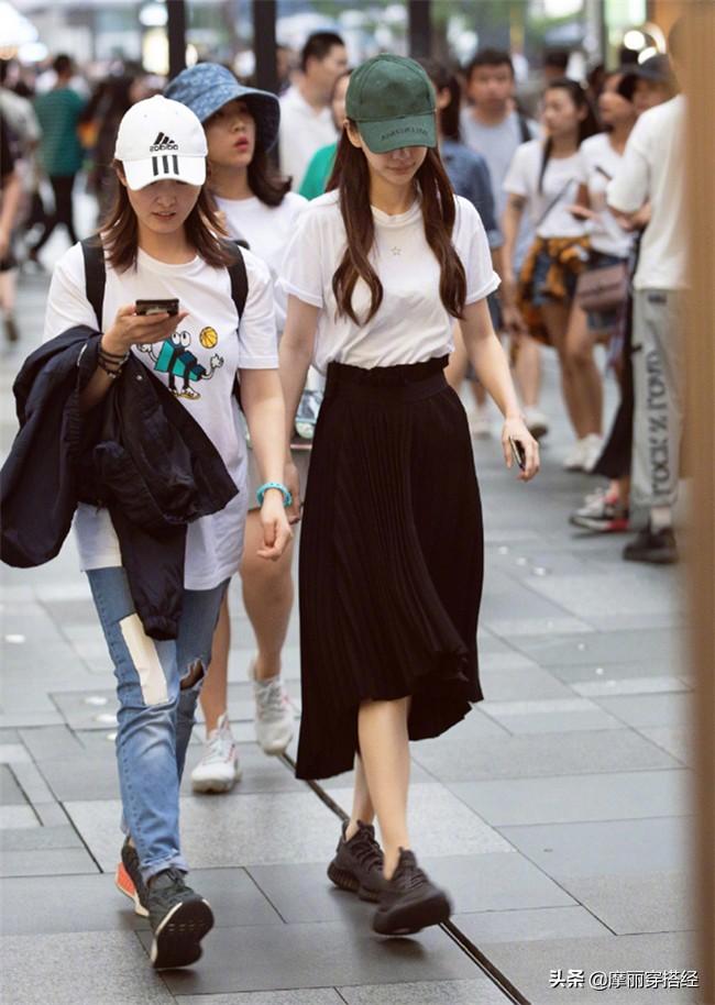 白色T恤配黑色半身裙,悄悄的帶你玩轉(zhuǎn)夏日的混搭風(fēng)。配上一雙休閑的黑色運(yùn)動(dòng)鞋,逛街通勤都很時(shí)髦。