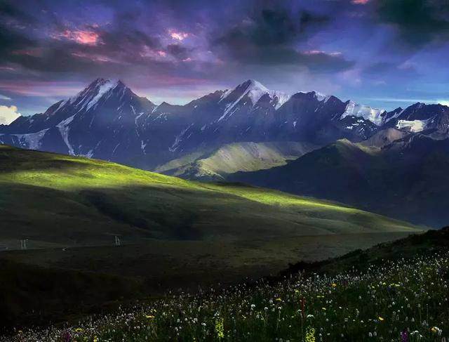 這里是青藏高原東北部一個巨大的邊緣山系,原始、純真、古樸。立夏之后,山中山林雖一片蒼翠,但山頂卻白雪皚皚,常年不化的冰川,在陽光的照射下,更是無法描摹的瑰麗。