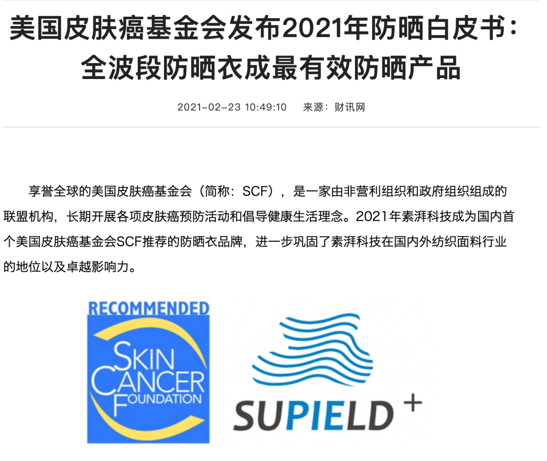 還成為了美國(guó)皮膚癌基金會(huì)推薦的防曬衣品牌。