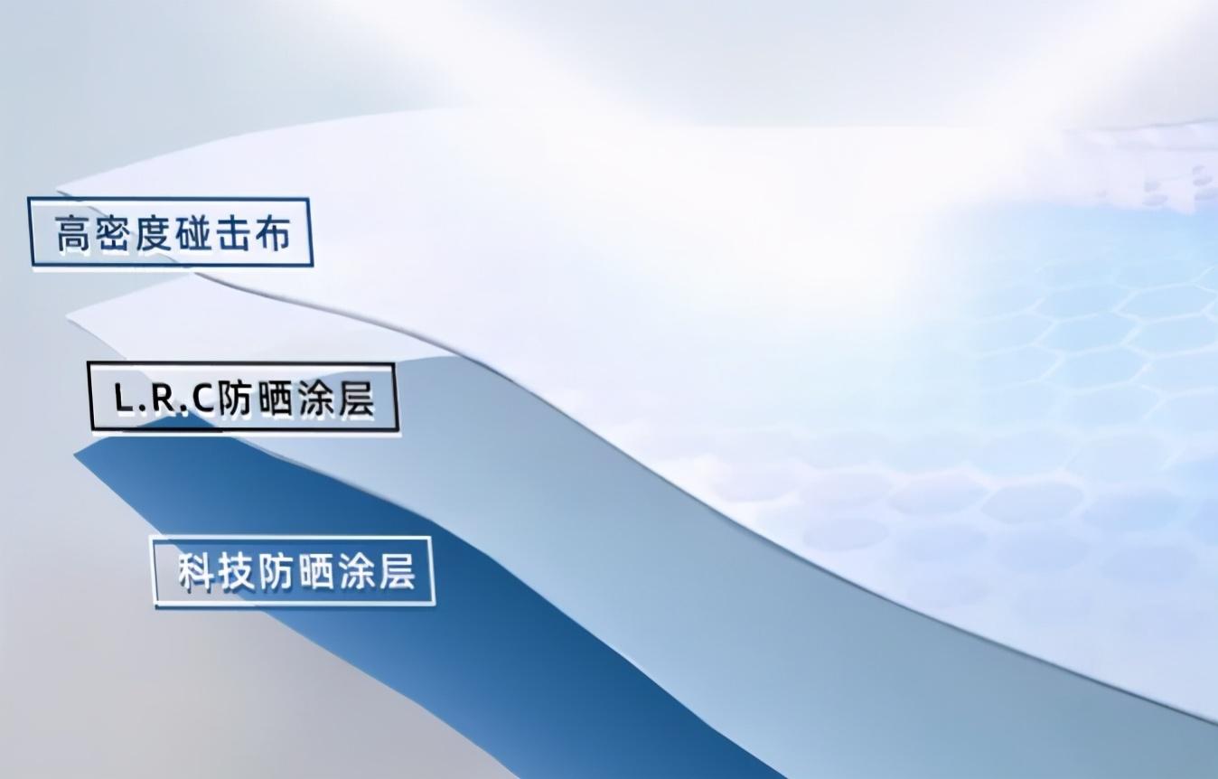 之所以防曬果這么好,是因?yàn)槟粗競(jìng)阌昧?層面料,高密度碰擊布+ L.R.C 防曬涂層+科技防曬涂層,PDF 值達(dá)到 50+,比一些防曬霜還能打。