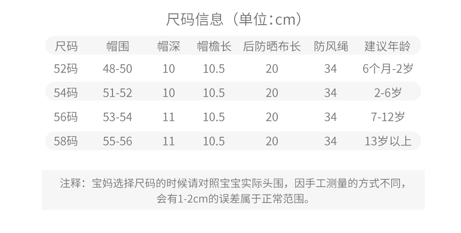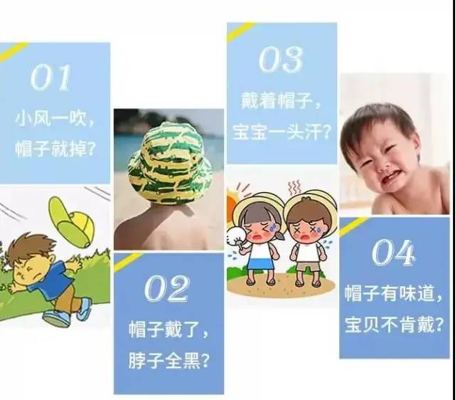 美國兒科學會的建議中,特別提到了能夠遮住頸部有檐的防曬帽,而且對于6個月以上的孩子帽椽寬度需要7.5cm以上