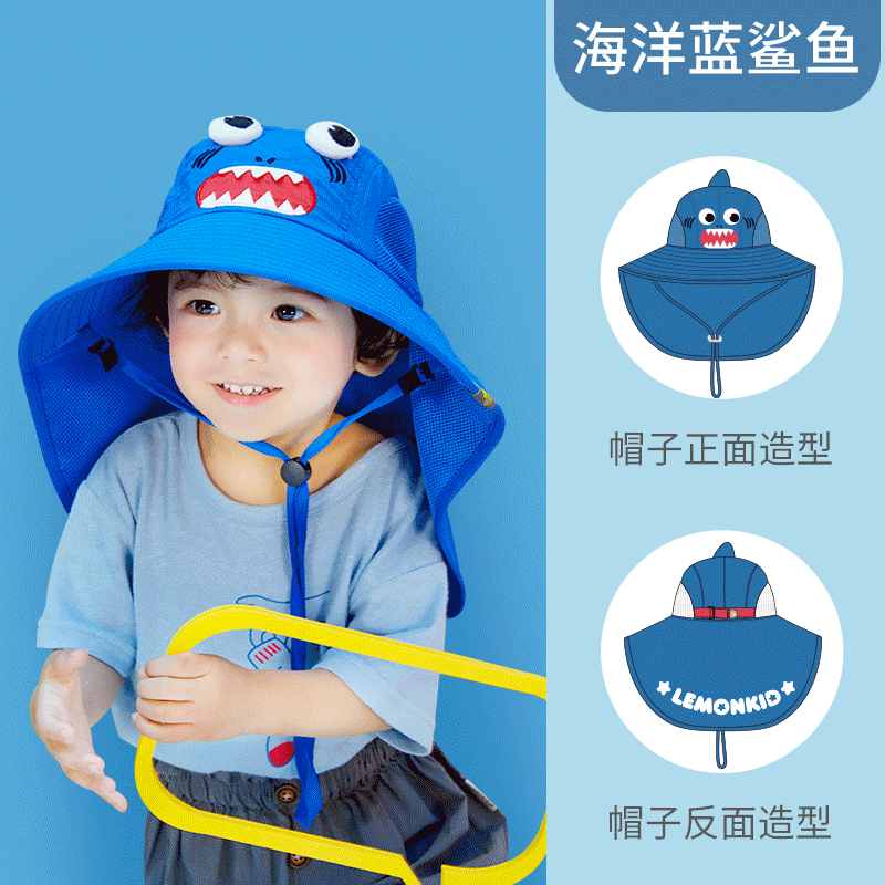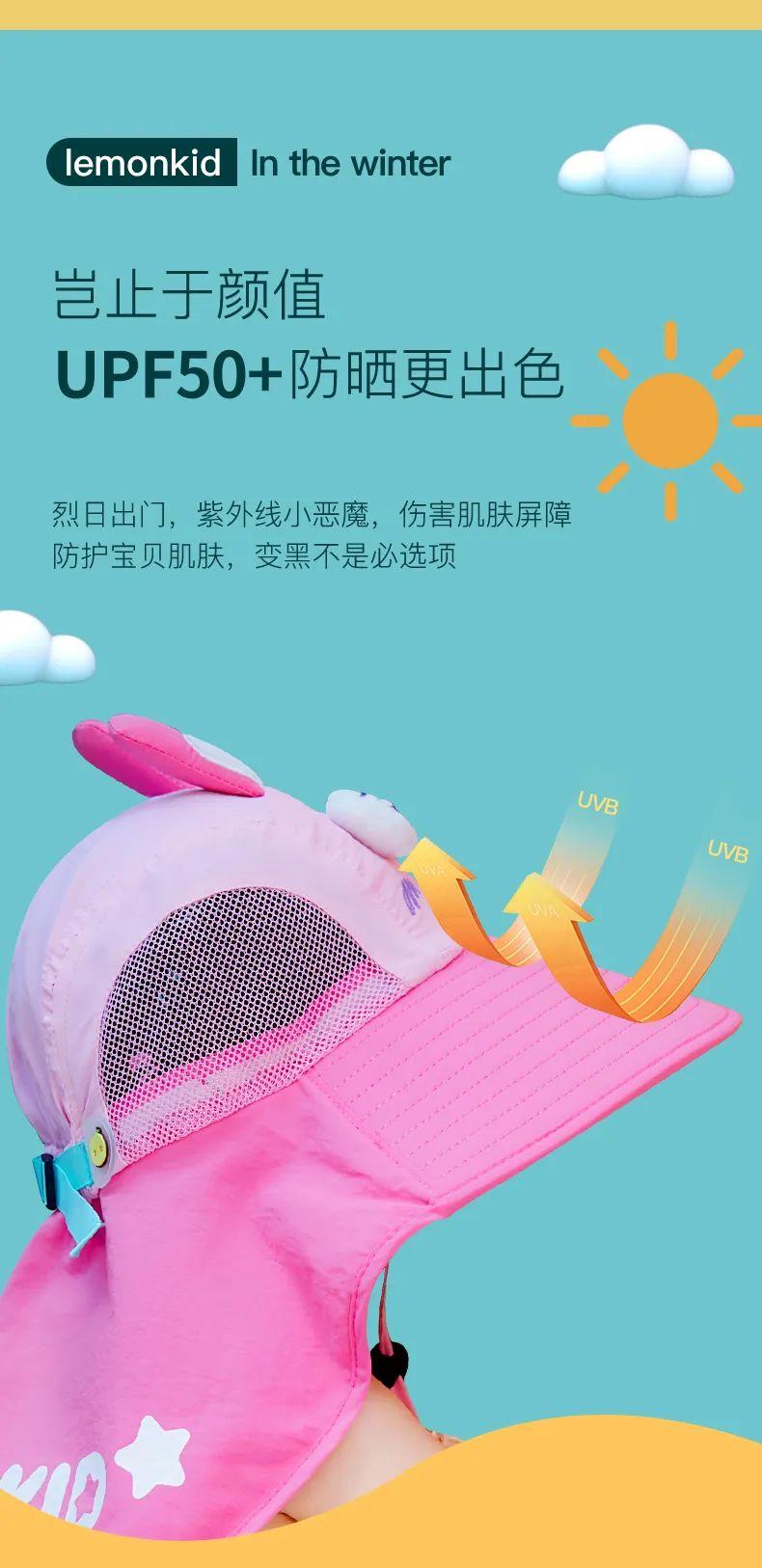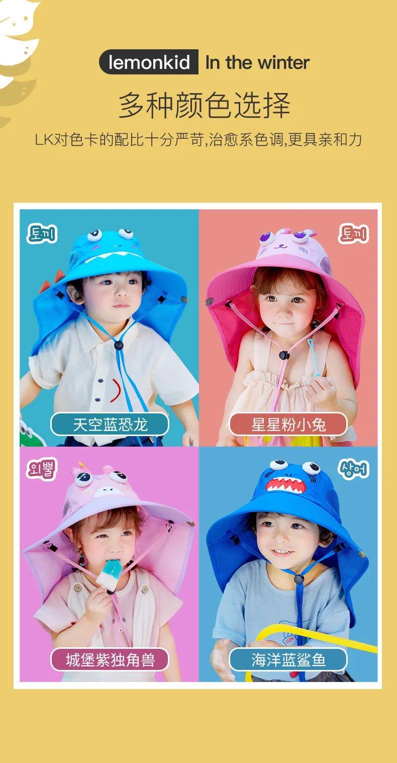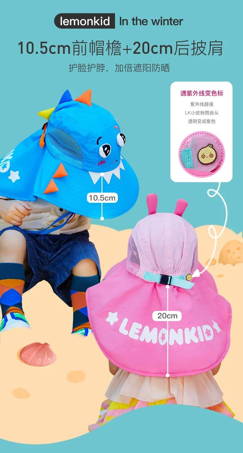 Lemonkid檸檬寶寶兒童防曬帽防曬面積>270°,小耳朵也能被呵護
