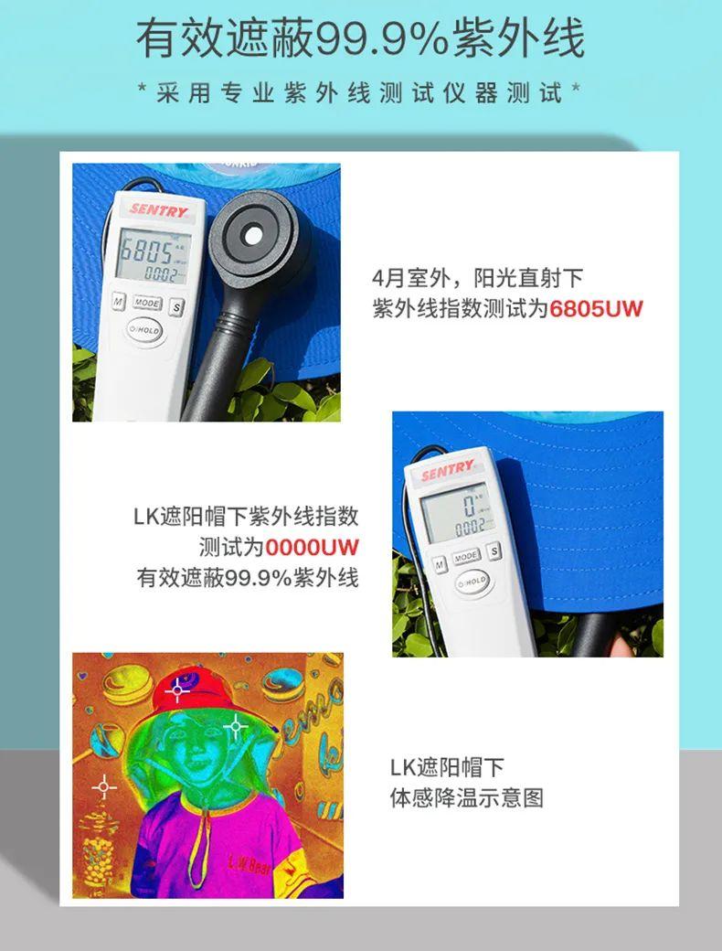 它家的防曬帽做的極為專業(yè),用的都是超強防曬的面料,防曬級別大于UPF50+,阻隔紫外線的能力高達99.9%,光是材質(zhì)這塊,就比普通的防曬帽要好不少