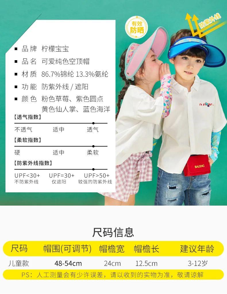 關(guān)于太陽帽的選擇,我們一直都特別謹慎。經(jīng)過一輪輪篩選,終決定開團檸檬寶寶的2款防曬帽,第一款是荷葉大帽檐遮陽帽是加長后頸防曬帽的設(shè)計,不喜歡加長后頸防曬帽的麻麻們,今天還給大家準備了第二款可愛純色大帽檐空頂帽是加長加寬帽檐的防曬帽。性價比都超!級!高!