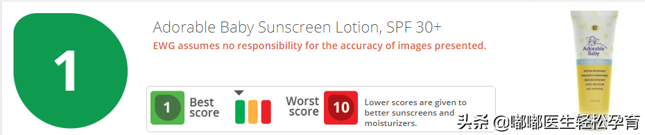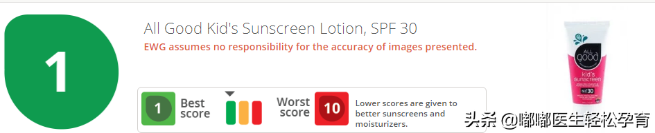 這款防曬在EWG美國(guó)環(huán)境工作組推薦的一款兒童防曬霜,綜合評(píng)分為一分(分?jǐn)?shù)越低越好)。