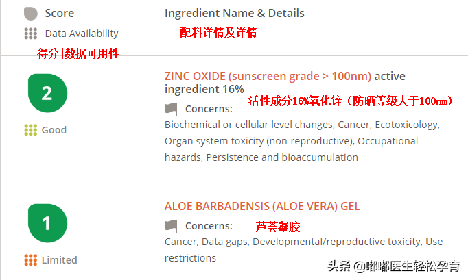EGW認(rèn)為風(fēng)險(xiǎn)較高不推薦寶寶使用的成分。(ps:對(duì)于成人來說不必太過于排斥化學(xué)防曬因?yàn)楸M管已發(fā)表的研究表明,幾種化學(xué)防曬與人類性激素或甲狀腺激素相互作用,但沒有足夠的信息來確定對(duì)成人潛在風(fēng)險(xiǎn)。所以以下的成分僅僅不建議寶寶使用)