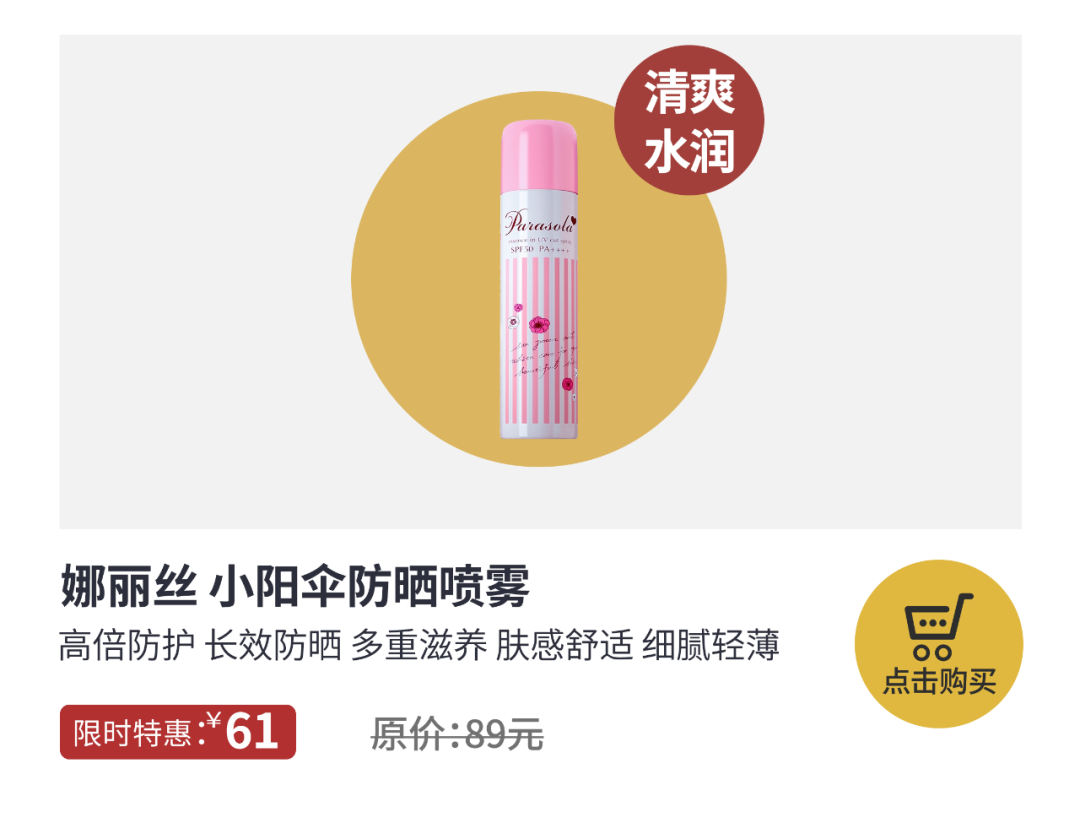 還有更貼心的,它是物理+化學防曬,噴了之后就可以馬上出門,隨時補擦隨時發(fā)揮作用。