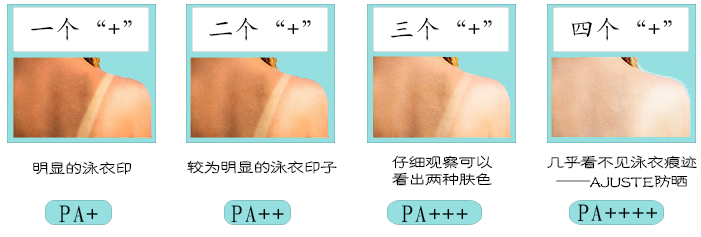 而大家比較熟知的PA(Protection Anti UVA)是亞洲大部分地區(qū)UVA的防護測定等級,PA+等同于PPD2~4,PA++等同于PPD4~8,PA+++等同于PPD≥8。PA標示的缺陷正云別燃圓皇干響以在于無論這個產(chǎn)品是PPD20還是PPD8,都標為“PA+++”,但事實上兩者對UVA防護果相差很遠。因此,為了特別關注UVA防護果,你不僅應該看包裝上的PA標識,還要看看產(chǎn)品說明書內(nèi)PPD的具體系數(shù)是多少。