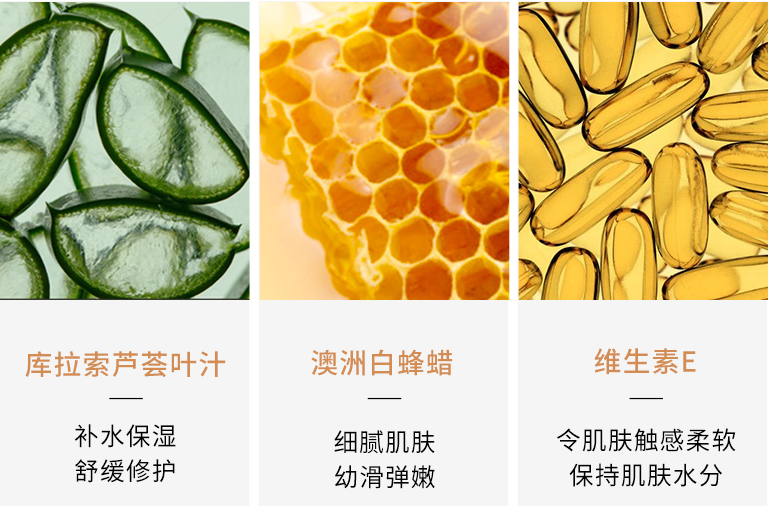 這款防曬霜采用的是天然精粹,包括庫拉索蘆薈葉汁、澳洲白蜂蠟、維生素E,能夠補水保濕,舒緩修復,起到外防內(nèi)養(yǎng)的作用。