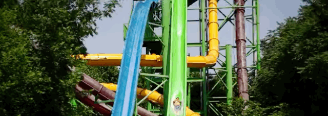 在這可以一次性體驗(yàn)不同形狀和難度的滑梯,大人孩子都能玩。但刺激的還是占據(jù)高處的“大水桶”,灌滿澆下來(lái)瞬間清涼。