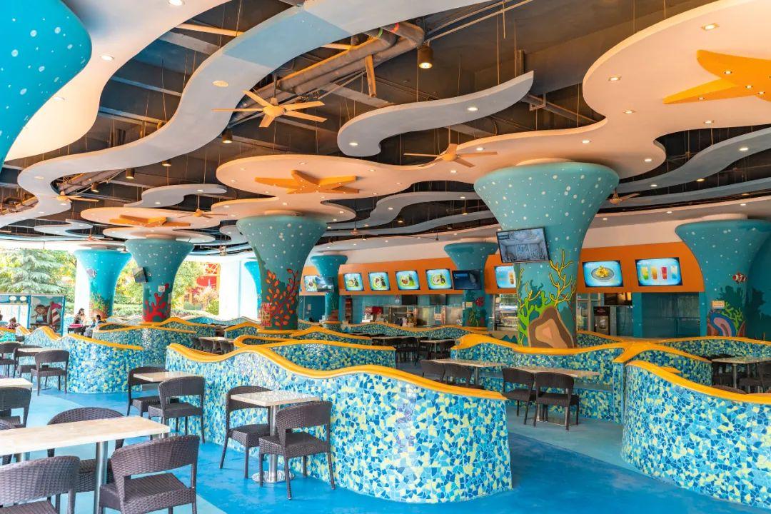 帶娃出門(mén)除了考慮怎么玩就是怎么吃了,園區(qū)內(nèi)光是提供正餐的餐廳就有6個(gè),名字童趣,裝修走的是濃濃的海洋風(fēng),而且空間大位置多,價(jià)格也不貴。