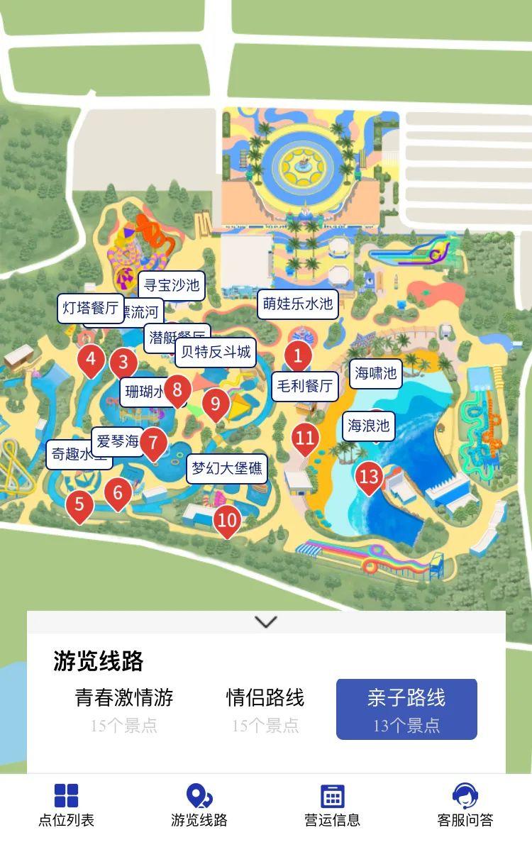 樂(lè)海整個(gè)園區(qū)大致分為揚(yáng)帆塞浦路斯、歷險(xiǎn)亞特島、奇幻珊瑚親子區(qū)和風(fēng)情陽(yáng)光海岸四個(gè)區(qū)域,比較適合帶娃玩的是奇幻珊瑚區(qū),在入口的右前方處。