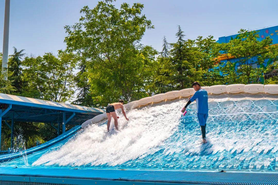 喜歡挑戰(zhàn)的還可以試試模擬沖浪,看著難度不高,其實(shí)站上去才知道這個(gè)項(xiàng)目拼的就是膽量和平。