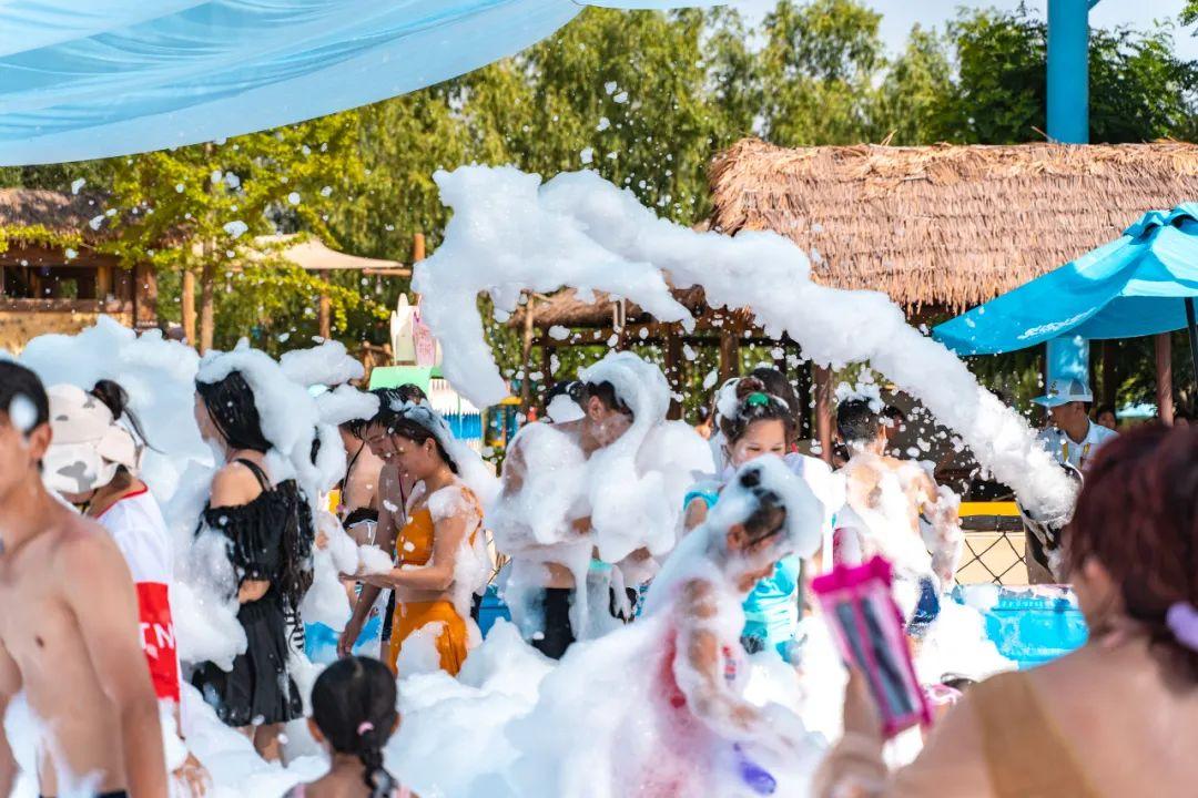 泡沫大戰(zhàn)是今年新增的項(xiàng)目,白色的泡泡綿密晶瑩,特別適合女生玩,記得玩罷去池邊沖洗后再走哦~