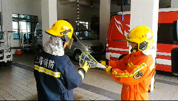 近日,上海市奉賢支隊江海中隊的消防官兵做了實驗。一名身著防護服裝的消防員手持一只開啟電源的電蚊拍,另一個人將某常用品牌的殺蟲劑噴向該電蚊拍,電蚊拍瞬間冒出了一團火焰。