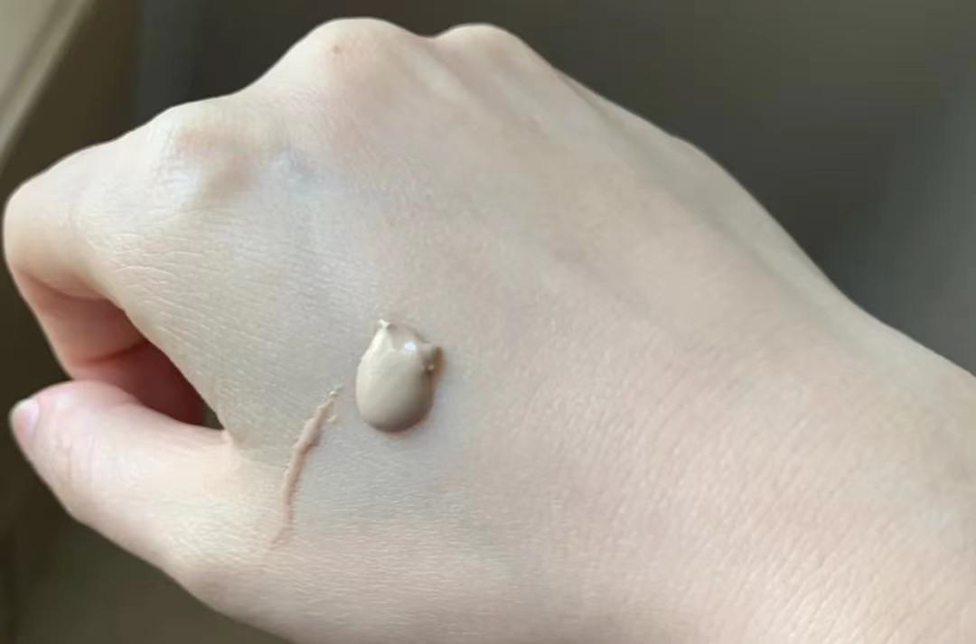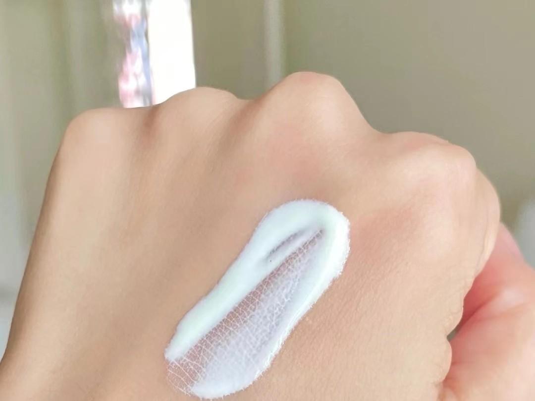 這支防曬霜配方經(jīng)過調(diào)色處理,解決了物理防曬假白的問題。膚色凝乳質(zhì)地,上臉?biāo)疂櫜徽衬?,幾乎沒有潤色果。